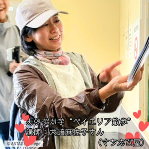 こんにちは。ASTAGEカレッジの寺村です。本日は、11月18日(火)に開催したよのなか学『大阪ベイエリア散歩』をご紹介します。このプログラムには、プロのツアーガイドとして日本や世界で活躍する『大﨑麻佐子さん(おでかけエ […]