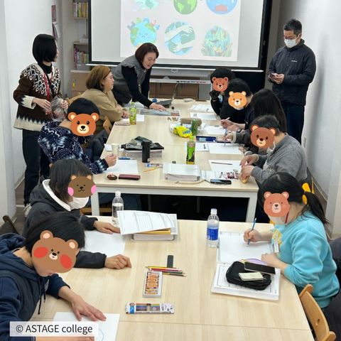 そこから、「理想の地球を絵に描くワーク(写真下)」などを経て、「熊が山を降りなければならなかったのは、人間のせいでもある…」という複雑な真実にたどり着いたメンバーからは、「自分の行動を見直して、無駄な電気や買い物は見直したいと思った。」などの声が聞かれ、自分サイズの答えを見つけた様子でした。
