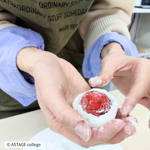お餅の柔らかさの調整、こしあんとイチゴを包む指の感覚…イメージがお店で売ってるアレだけに、理想と現実に戸惑うばかりでしたが、何とか完成!こしあんが苦手なメンバーはお餅にチロルチョコを混ぜたチョコ餅をつくるなど、各々が各々のゴールにたどり着きました。