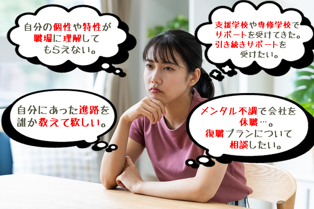 生活支援や就労支援に携わっ てきたスタッ フ、企業内の人材育成や雇用管理支援を行ってきたスタッフがいます。私たちは、あなたが「やっ てみたい! 」と主体的に行動する際のサポーターとなり、共に喜びを分かち合いたいと思っ ています。